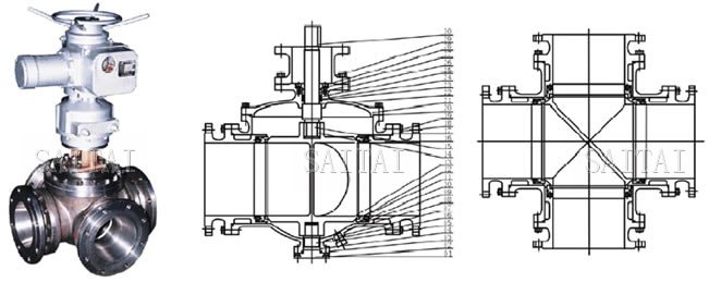四通四密封球阀外形结构图